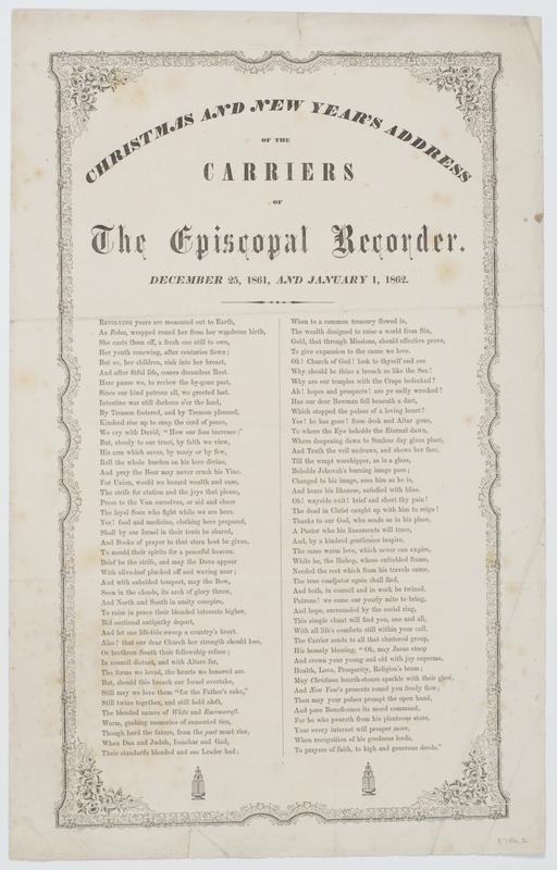 Christmas and New Year's address of the carriers of the Episcopal recorder. December 25, 1861, and January 1, 1862.