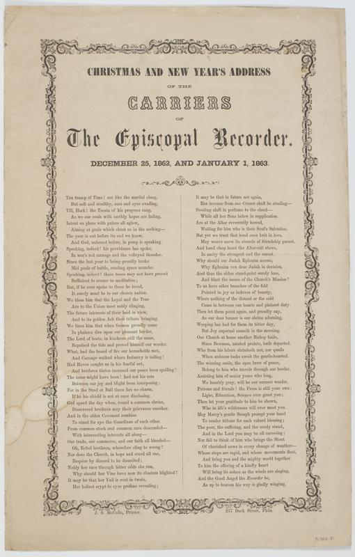 Christmas and New Year's address of the carriers of the Episcopal recorder. December 25, 1862, and January 1, 1863.