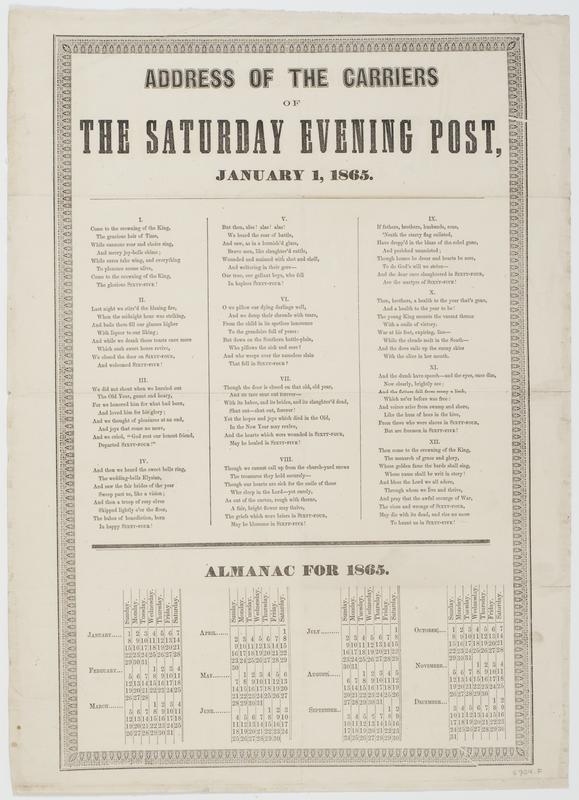 Address of the carriers of the Saturday evening post, January 1, 1865.