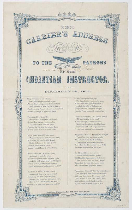 The Carrier's address to the patrons of the Christian instructor. December 25, 1861.