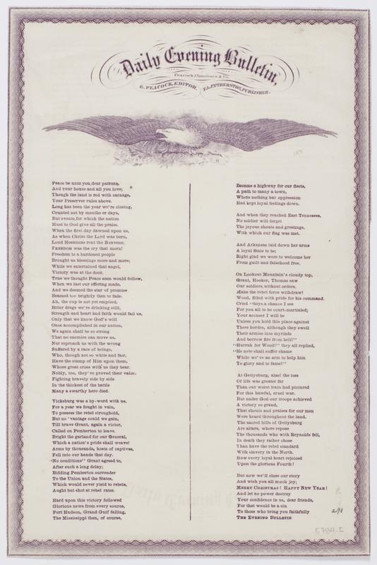 The poem mentions several Civil War battles, including Gettysburg, from 1863.