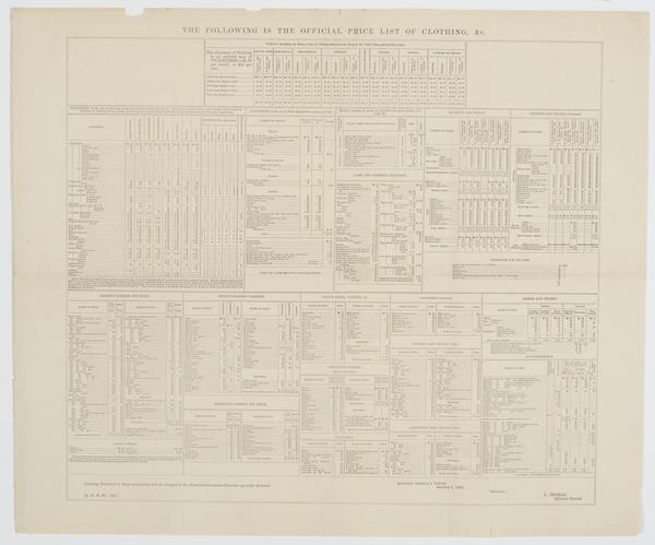 The following is the official price list of clothing, &c.