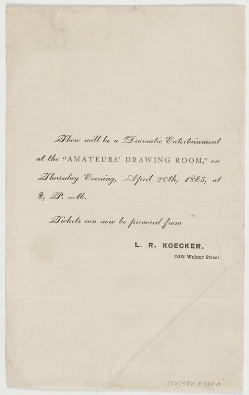 Matinee musicale by Mrs. Nevins assisted by Miss Susan Galton and others, : at the Amateur Drawing Room, 17th Street, above Chestnut, Thursday, May 20th at 12 o'clock, doors open at half past eleven. Tickets one dollar. To be had at the Drawing Room.