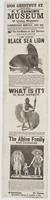 P.T. Barnum's Museum of Living Wonders! : will be opened for two weeks, commencing Monday, Dec. 23d, in the spacious hall fitted up expressly for the better inspection of these marvels of animated nature, on the first floor, and in this eligible location, for the especial accommodation of family parties. To be seen at all hours from 9, A.M. to 10, P.M. The living black sea lion ... The What is it? or, man monkey! ... The albino family from Madagascar, ... The albino family will be absent for meals from 12 to 1 and from 5 to 6 o'clock. Admission. 25 cents Children under 10 years, 15 cts.