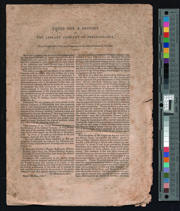 B26F27 - Notes for a history of the Library Company of Philadelphia. (From Waldie's Port Folio and Companion to the Select Circulating Library.), 1835.pdf-1