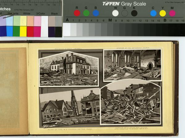 Album containing images of Johnstown, Pennsylvania in 1881 and after the great flood of May 31, 1889. Across the first two