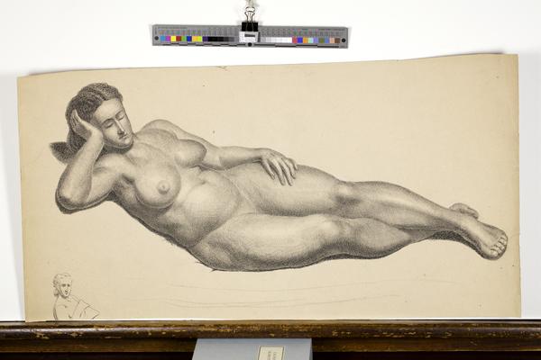 stand. The second female study [P.2017.8.19] shows a woman lying on her back, her head resting on her right hand that is bent
