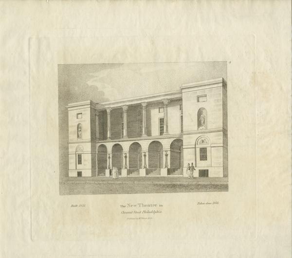 View of the third edifice of the Chestnut Street Theater, erected in 1822, after the designs of William Strickland at the