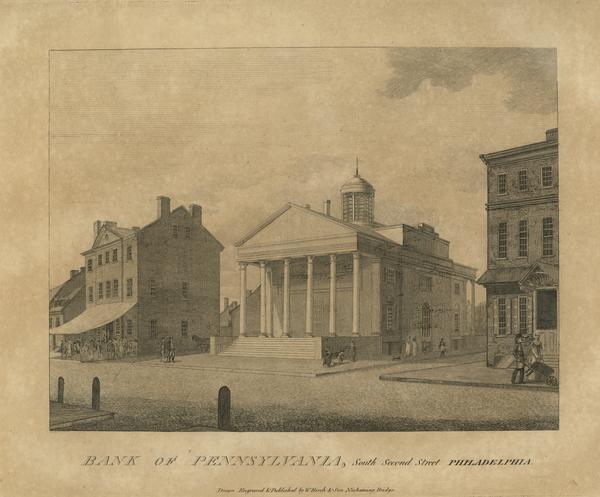 View showing the second edifice of the Bank of Pennsylvania (established 1780), built between 1798 and 1801, after the designs