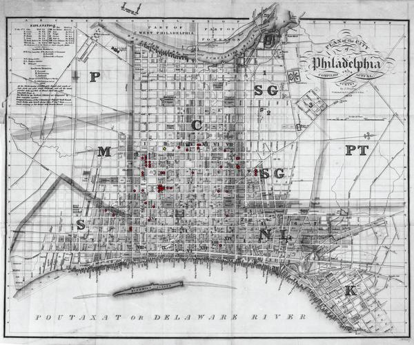 Map derived from locations within "A Guide to the stranger, or Pocket companion for the fancy, : containing a list of the gay houses and ladies of pleasure in the city of brotherly love and sisterly affection."