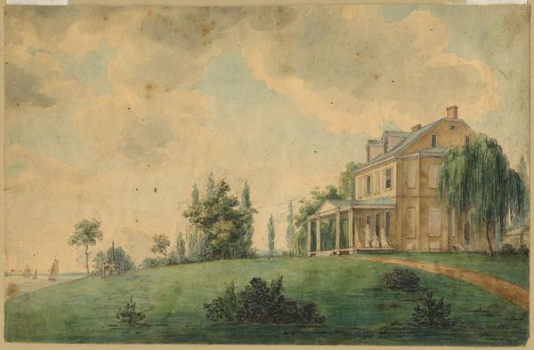 View, probably created as a study intended for later publication in the artist's "Country Seats," showing the Bucks County