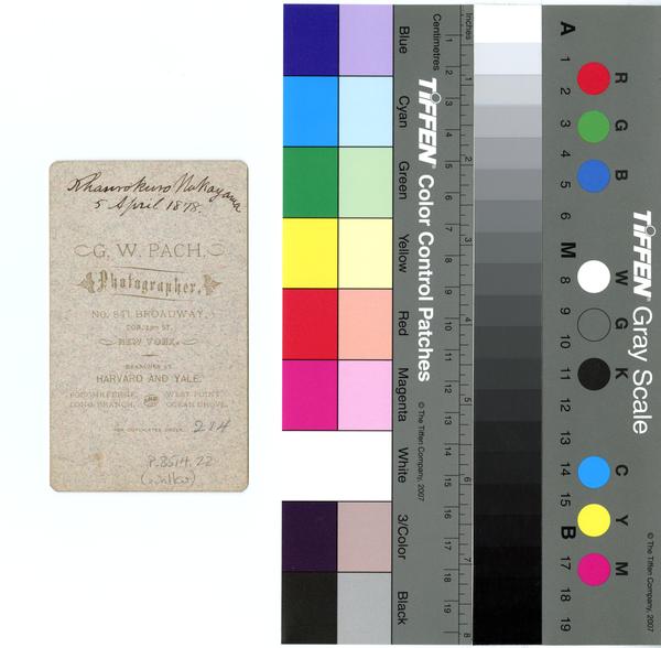 Photographer's imprint on verso: G.W. Pach, Photographer, No. 841 Broadway, Cor. 13th St. New York. Branches at Harvard and