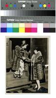 Portrait photograph showing Philadelphia Grand Opera Company manager Kathryn O'Gorman Hammer greeting Takane Nambu arriving