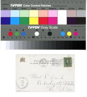 Library Company copy has manuscript message and address written on verso and is postmarked, Blodgett Mills, N.Y., Feb. 12, P.M. 1906; Syracuse Feb. 13, A.M. 1906. Includes one-cent stamp depicting Benjamin Franklin.
