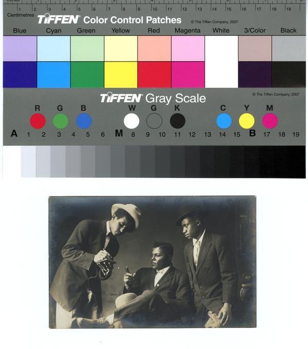 [Studio group portrait depicting African American men wearing modish attire and in a posed scene] [graphic]. |