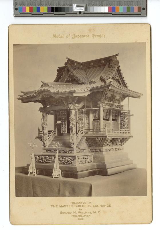 Model of Japanese Temple. Presented to The Master Builders' Exchange by Edward H. Williams, M.D. Philadelphia 1890 [graphic] / Chas. Truscott, photo expert, 1109 Cuthbert Street, Philada.