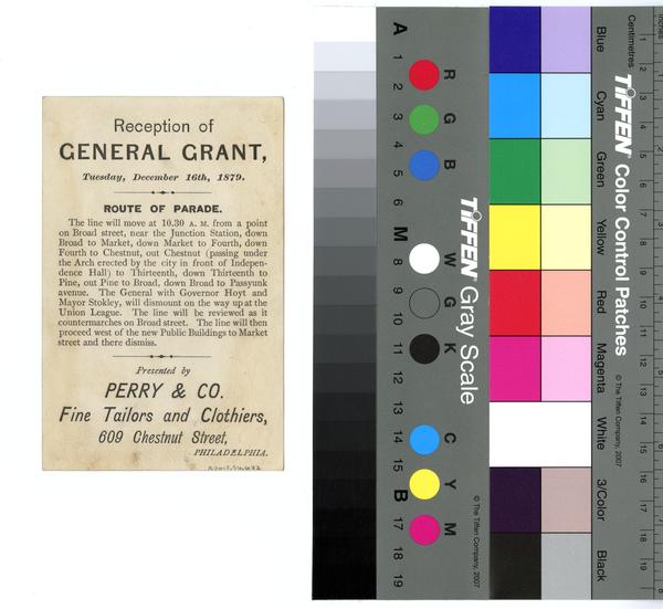 Text printed on verso: Reception of General Grant, Tuesday, December 16th, 1879. Route of parade. The line will move at 10:30
