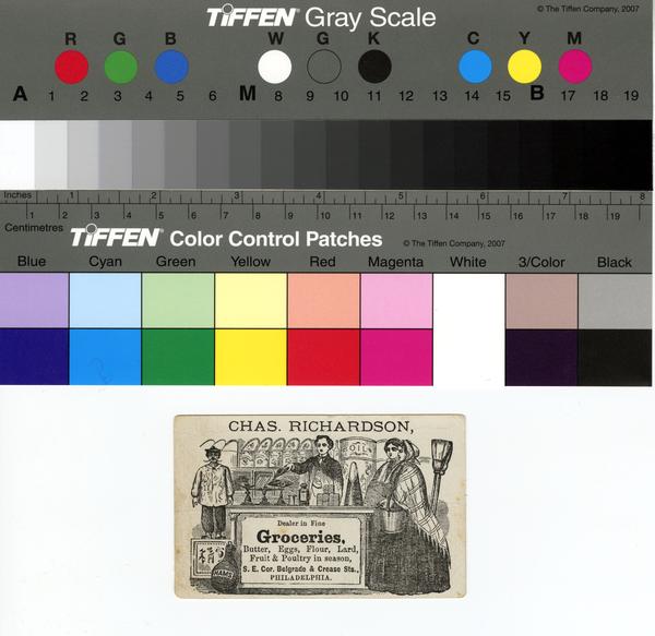 Chas. Richardson, dealer in fine groceries, butter, eggs, flour, lard, fruit & poultry in season, s.e. cor. Belgrade & Crease Sts., Philadelphia. [graphic].