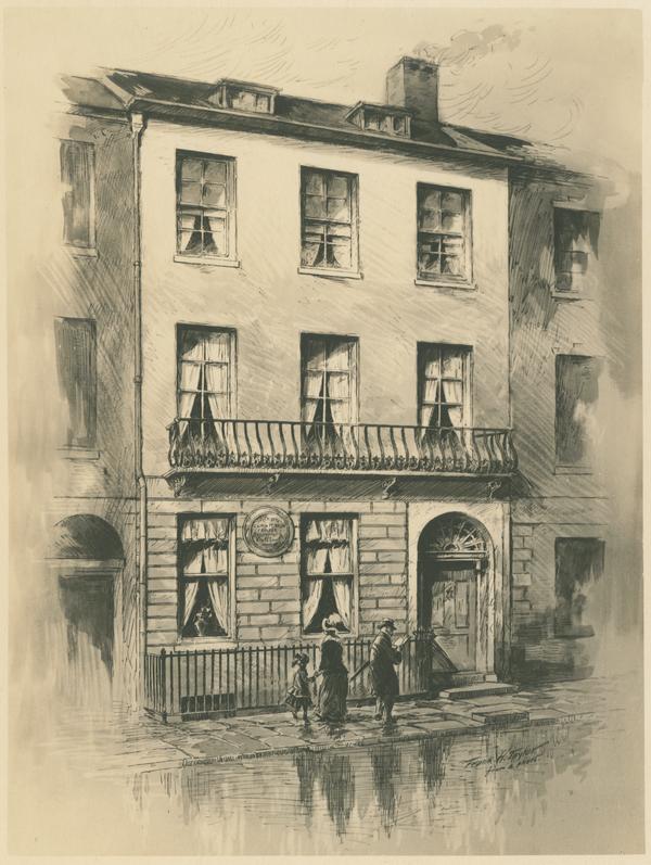Benjamin Franklin resided in London between the years 1757 and 1762, as a representative of the interests of Pennsylvania and several other colonies. While there he lived in a plain but substantial house at No. 7 Craven street, Strand, W.C. This fact is set forth upon a bronze tablet which is still affixed to the residence, and which bears the following inscription: "Lived Here, Benjamin Franklin, Printer, Philosopher, and Statesman. Born 1706, Died 1790." The lady who occupied the house at the period of Franklin's sojurn was Mrs. Margaret Stevenson, a widow. Her grandson, Dr. T.T. Hewson, came to Philadelphia in 1796, and made this city his permanent home. He died in 1848. This drawing had been made from a photograph.
