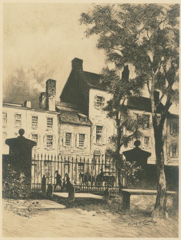 Church Cemetery at Arch and Fifth streets. The larger building shown in the drawing, located on the north side of Arch street,