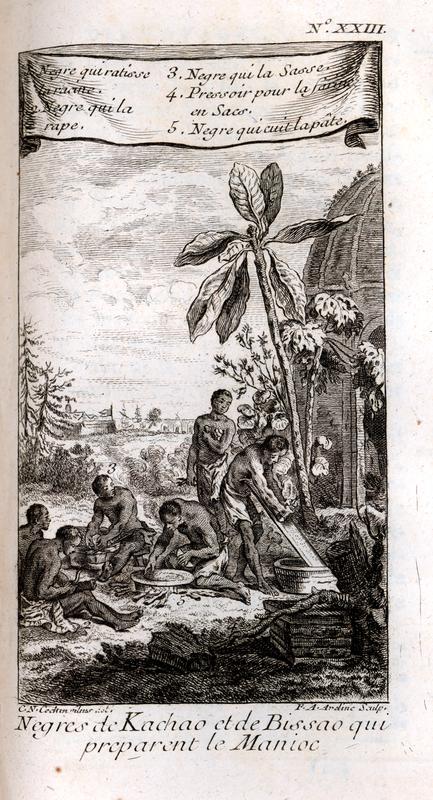 Negres de Kachao et de Bissao qui preparent le Manioc [graphic] / C.N. Cochin, del. ; F.A. Ardiné, sculp.