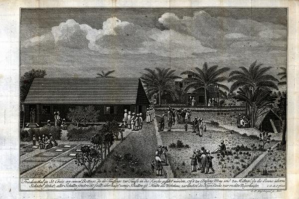 as follows, "Friedenstahl in St. Croix on a day of prayer, on which the baptismal candidates are led into church for baptism,