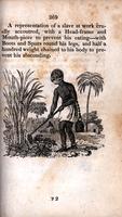 Accompanied by the following text: "A representation of a slave at work cruelly accoutred, with a Head-frame and Mouth-piece