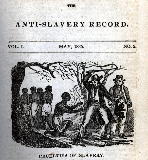 Caption title vignette in the Anti-Slavery Record (New York: Published by R.G. Williams, for the American Anti-Slavery Society, 1835-1837), vol. I, no. 5 (May, 1835), p. 49.