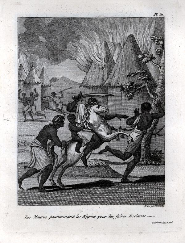 Les Maures poursuivant les Nègres pour les faires Esclaves [graphic] / G. Brd fme Charost D. xit ; Gravé par Demonchy.