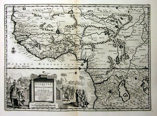 Nigritie, ou le pays des Negres en Afrique, avec tous ses royaumes, bayes, rivieres et ports de mer, suivant les meilleurs relations de ceux qui ont ete sur les lieux, et nouvellement mise au jour. [graphic] / par Pierre Vander AA.