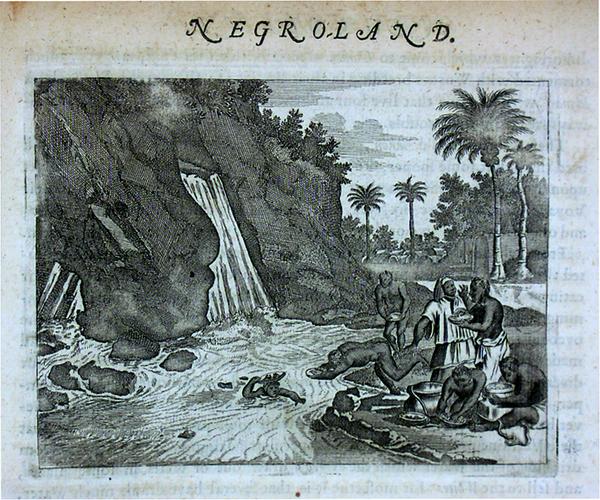 Illustration in John Ogilby's Africa: Being an Accurate Description of the Regions of Aegypt, Barbary, Lybia, and Billedulgerid: the Land of Negroes, Guinee, and Aethiopia, and Abyssines, with all the Adjacent Islands, either in the Mediterranean, Atlantick, Southern, or Oriental Sea, Belonging Thereunto (London: Printed by Tho. Johnson, for the author, and are to be had at his house in White Fryers, M.DC.LXX [1670]), p. 449.