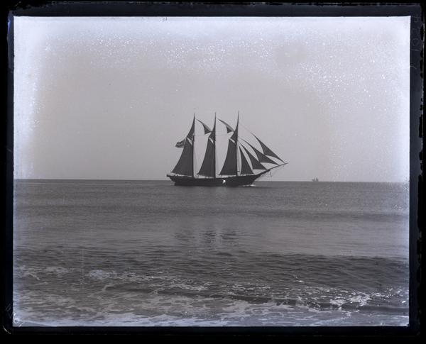 3 masted schooner "John M. Brown" from beach, [Sea Girt, NJ] [graphic].