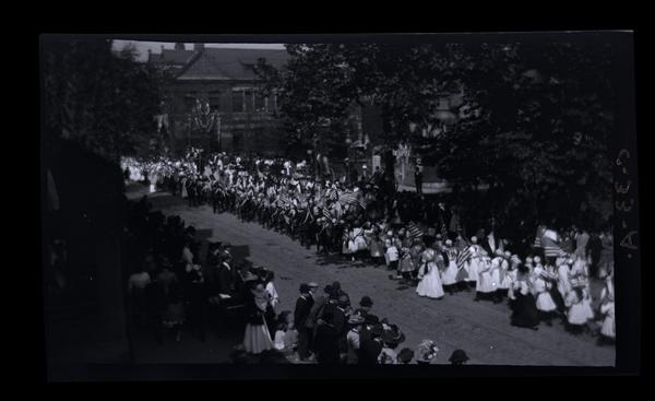 Manuscript note on original envelope: 10-6-1908. Historical parade, being 225th aniv of Germantown Friends Meeting. On Germantown Ave.