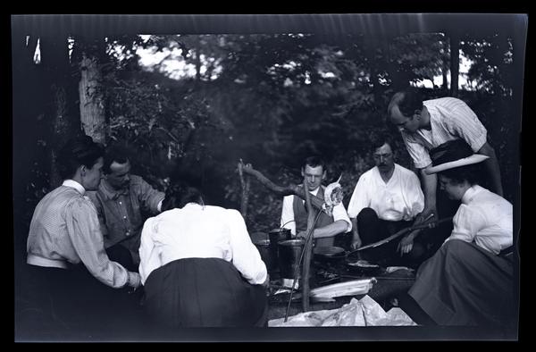 [Men and women cook at campfire], Up Rancocas [NJ] [graphic].