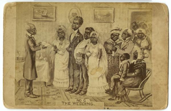 Photographic reproductions of drawings based on a racist series of African American caricatures originally created for Harper's