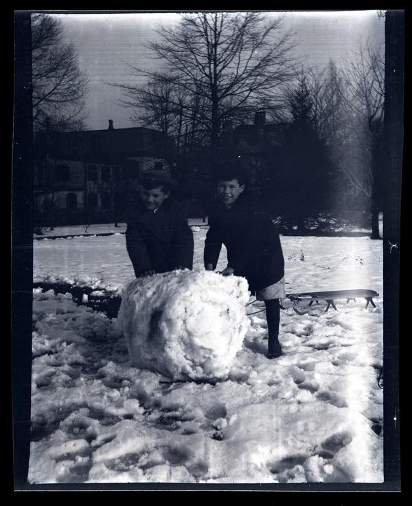 [Elliston Perot Morris Jr. and Marriott Canby Morris Jr. rolling large snowball] [graphic].