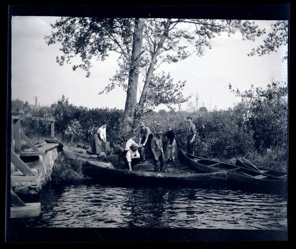 [Launching the canoes], canoeing, Egg Harbor River, NJ [graphic].