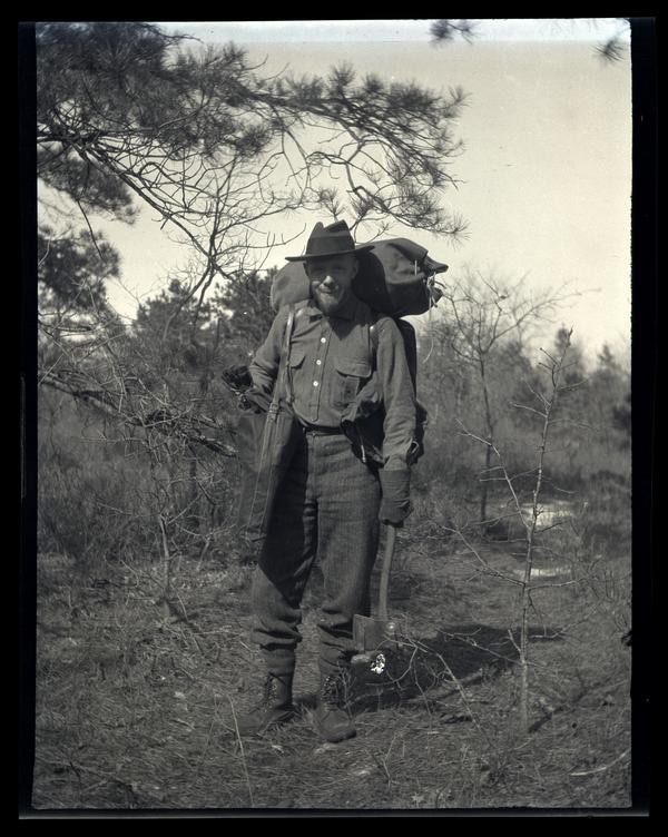 [Man with backpack and ax, Egg Harbor River, New Jersey] [graphic].