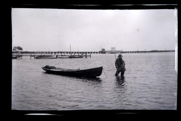[Man in water pulling boat, Wreck Pond, Sea Girt, NJ] [graphic].