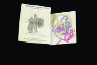 Illustrated printed farewell card signed “Jack” and “Mac” and clipping reading “Free: this travel book!” pasted on front cover.