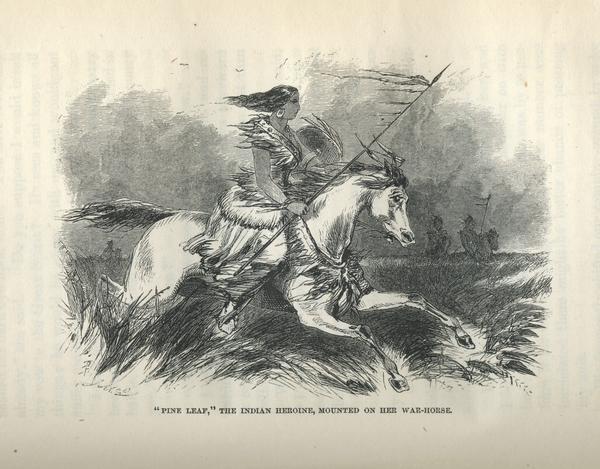 “Pine Leaf,” the Indian heroine, mounted on her war-horse. |