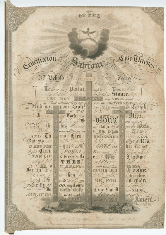 Printed within and flanking three crosses; text to be read across lines and also as an acrostic within each of the crosses.