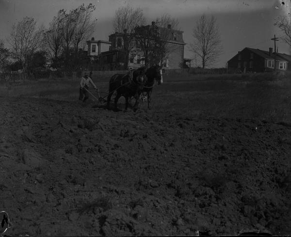 [Man plowing a field with horses] [graphic].