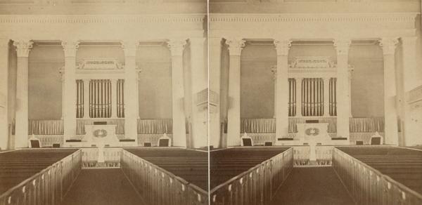 Interior views showing the chancel of the church built 1833-1834 after the designs of Thomas Ustick Walter at 1501-1515 Chestnut