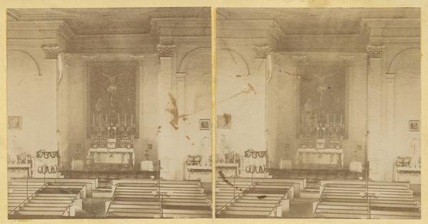 Interior views showing the altar during Christmas of the Roman Catholic church built 1851 after the designs of Joseph D. Koecker
