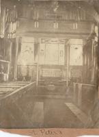 Arcadia caption text: This 1860 view of the organ loft and altar, without a pulpit, at the east end of St. Peter’s Church