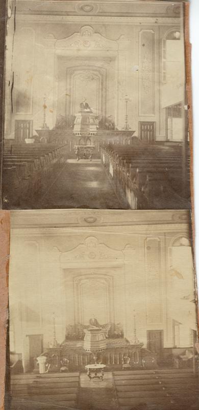 Views include a man, presumably Rev. Francis Church, at the pulpit in front of a recess heavily adorned with ornamentation.