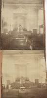 Primarily interior views showing the altar and pews of the church erected in 1855 on the 500 block of South Broad Street.