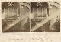 Contains four stereographic images mounted on paper, including four accompanied by publisher's labels describing church building