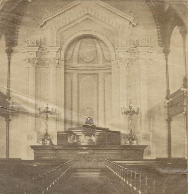 Interior views of the altar of the church, also known as the Tenth Presbyterian Church, built 1855-1857 after the designs